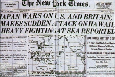 Primera página del "New York Times" con la noticia del ataque japonés a Pear Harbor, en Hawaii